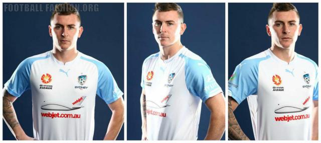 The away kit is mainly white with sky blue sleeves. Sky blue shorts and white socks complete the new Sydney FC alternate.